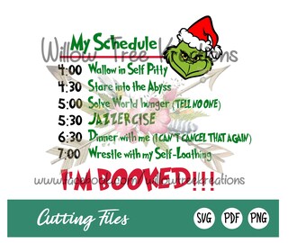 Grinch Schedule Svg Christmas Svg Im Booked Svg 450 299 SVG PNG EPS DXF Cricut cut file Silhouette cutting file Premium quality SVG cut files for your design needs. Im so glad that youre here. If your anything like me then you love the movie Grinch.