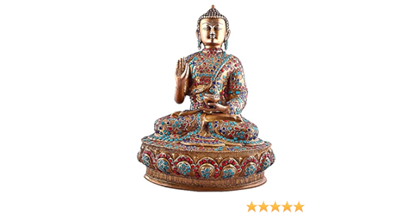 Amazon Com 1 2 Feet Tall Tibetan Buddha Statue Large Vintage Coral Turquoise Gemstones Bronze Old Buddhist Sakyamuni Blessing Buddha Sculpture Home Kitchen